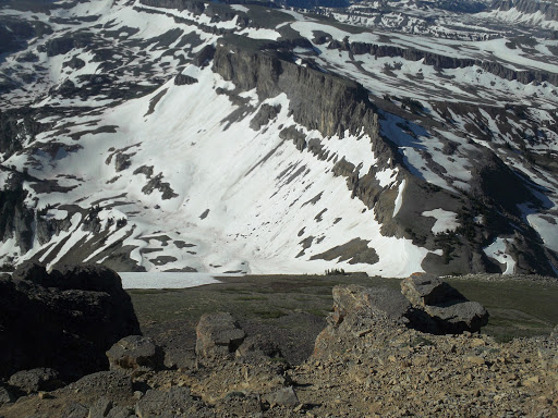 At Mt. Meek Divide, the shelf turns from NE to NW, and heads down Teton Canyon. I was bonking pretty hard at this point from the heat, altitude, and not drinking sufficient water, but the shelf drops quickly, and soon I was at the Devil’s stairs and then at the bottom of Teton Canyon for the last couple miles to the truck.