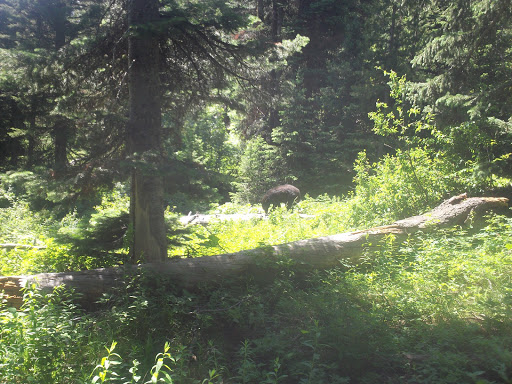 He was ripping trees apart and didn’t give a shit. I waited for fifteen minutes or so while he got out of the way. When I got to String Lake, I went swimming and then went to find the folks. Total time was just under 4 hours.