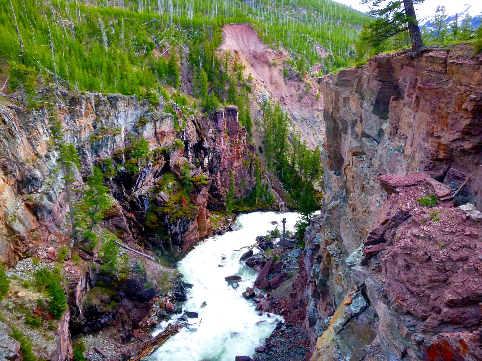 As a Scapegoat bonus, on Saturday evening Helena joined Molly and I for Molly’s last long run before the Pengelly Double Dip. We ran to North Fork Falls on the North Fork of the Blackfoot, a round trip of 14 miles. The falls are formed by a young anticline composed of the same layers that form the summit of Red Mountain pushing up through the softer surroundings. It’s an imposing place during spring runoff, as this pretty big river drops four-hundred feet over half a mile.